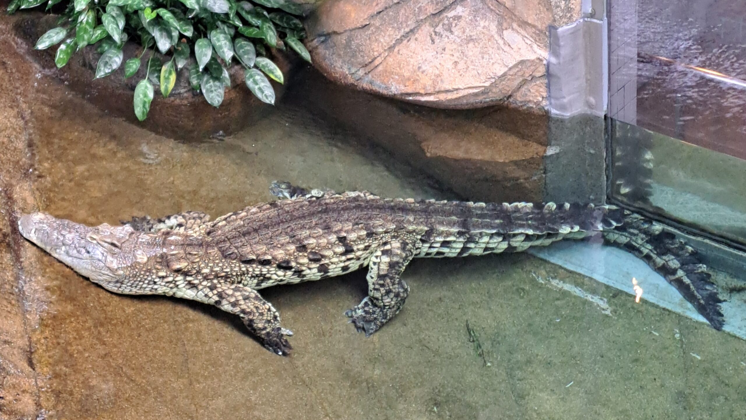 1階入口からも眺められる巨大水槽にいるのはナイルワニ。
