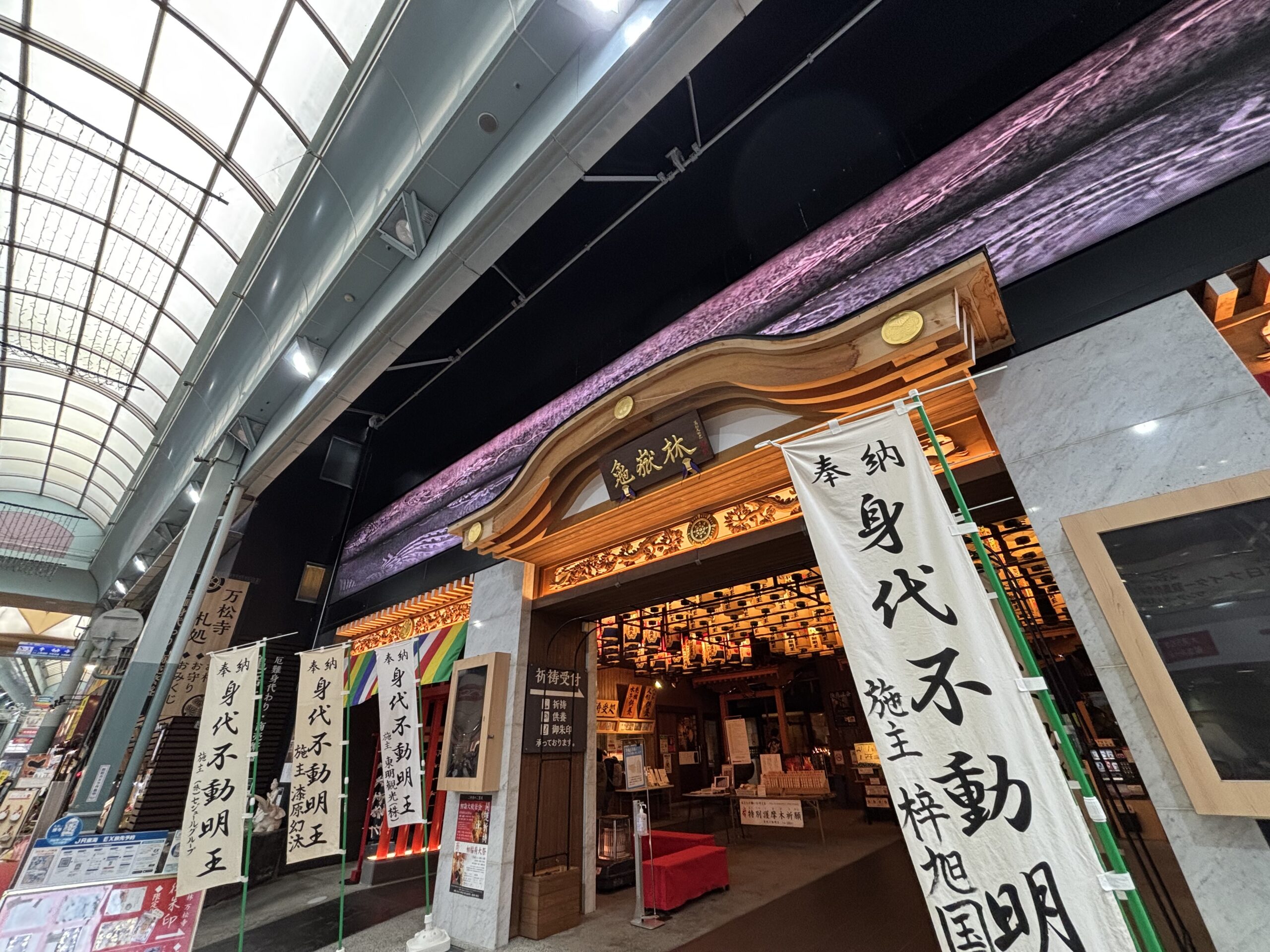 境内には建物の3階部分にまで届きそうな大きな白い龍の像がたち、商店街に面した本堂の入り口の上部にはLEDモニターが設置され、煌びやかに参拝客を迎えてくれます。
