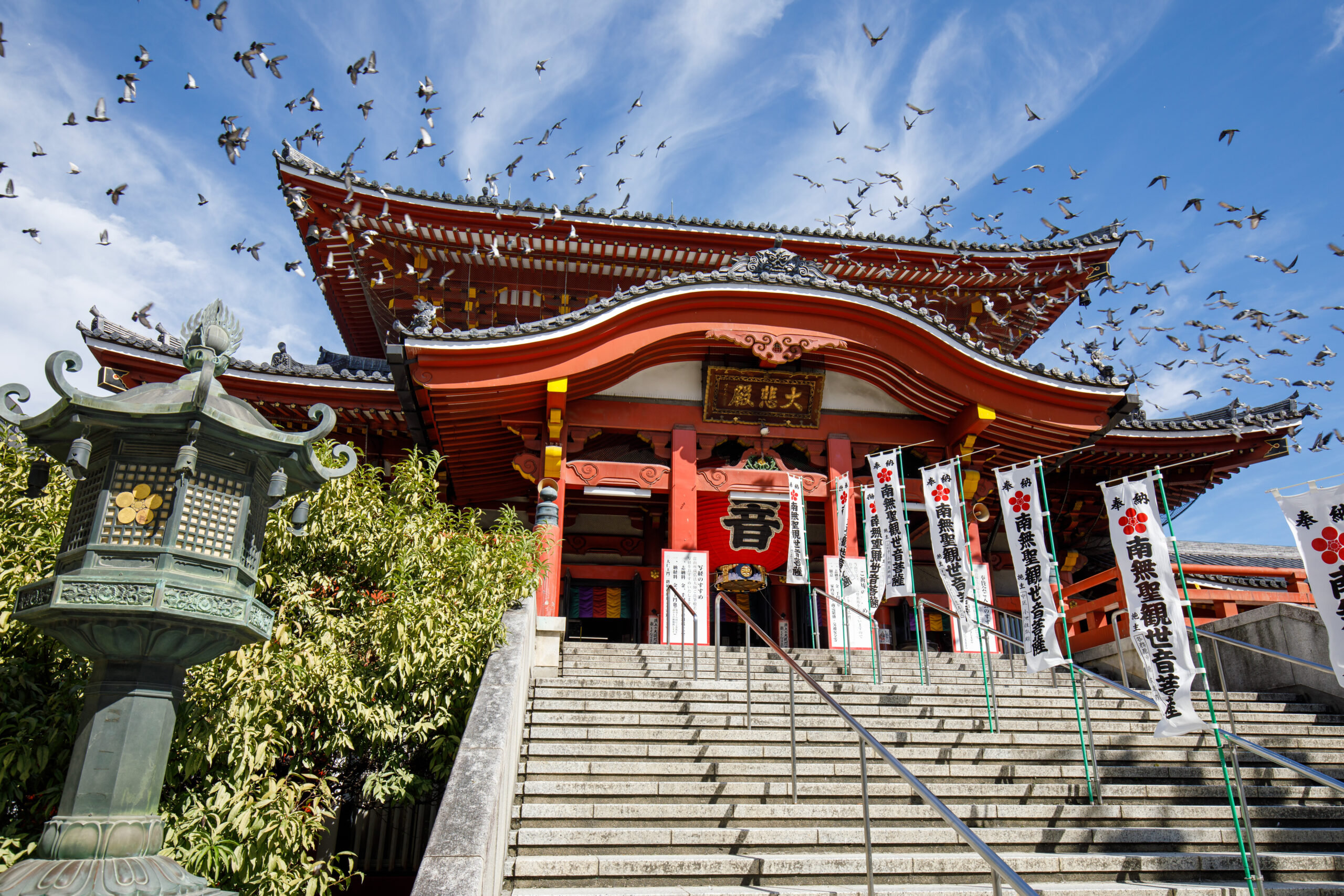 境内中心に堂々と建つ赤い本堂があり、階段をあがった2階にある為近くで見上げるとより迫力を増します。