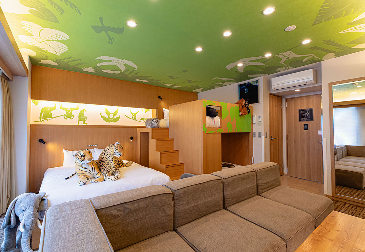 都会の中で豊かな自然に囲まれた、展示種類日本一を誇る東山動植物園とコラボレーションしたお部屋。「アフリカ」「アジア」「オセアニア・北極・南極」をテーマにした3つの客室は、それぞれのエリアにいる動物達と一緒に過ごせるコンセプトルームです。海外でも人気のイケメンゴリラ「シャバーニ」 や、テレビで紹介され一躍人気者のフクロテナガザル「ケイジくん」などの動物達が待っています。