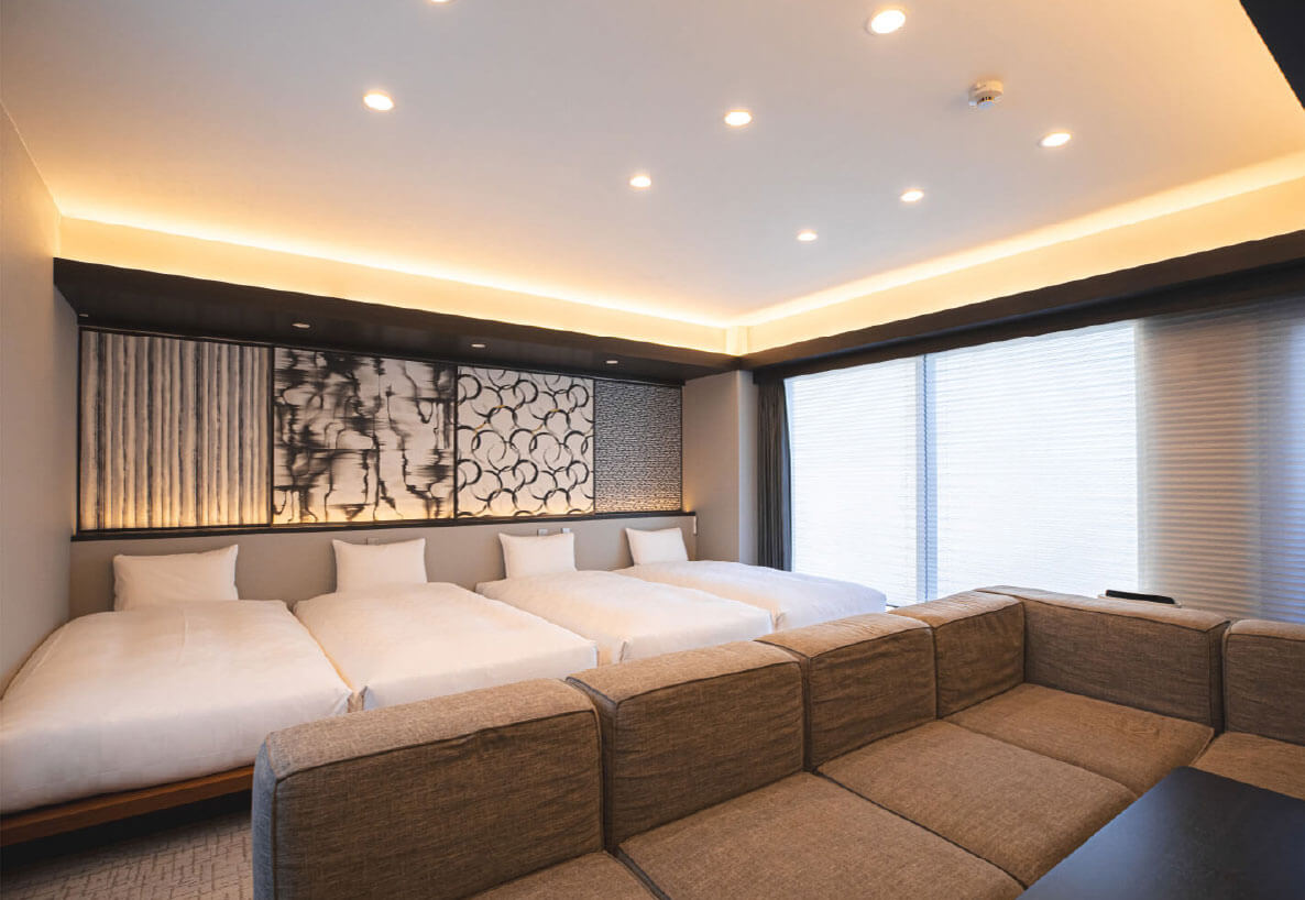 ご家族や友達同士などグループで泊まるなら、デラックスルームがおすすめです。人数や滞在目的などに合わせてお部屋をお選びください。定員は3名・4名・5名・6名のお部屋をご用意しております。